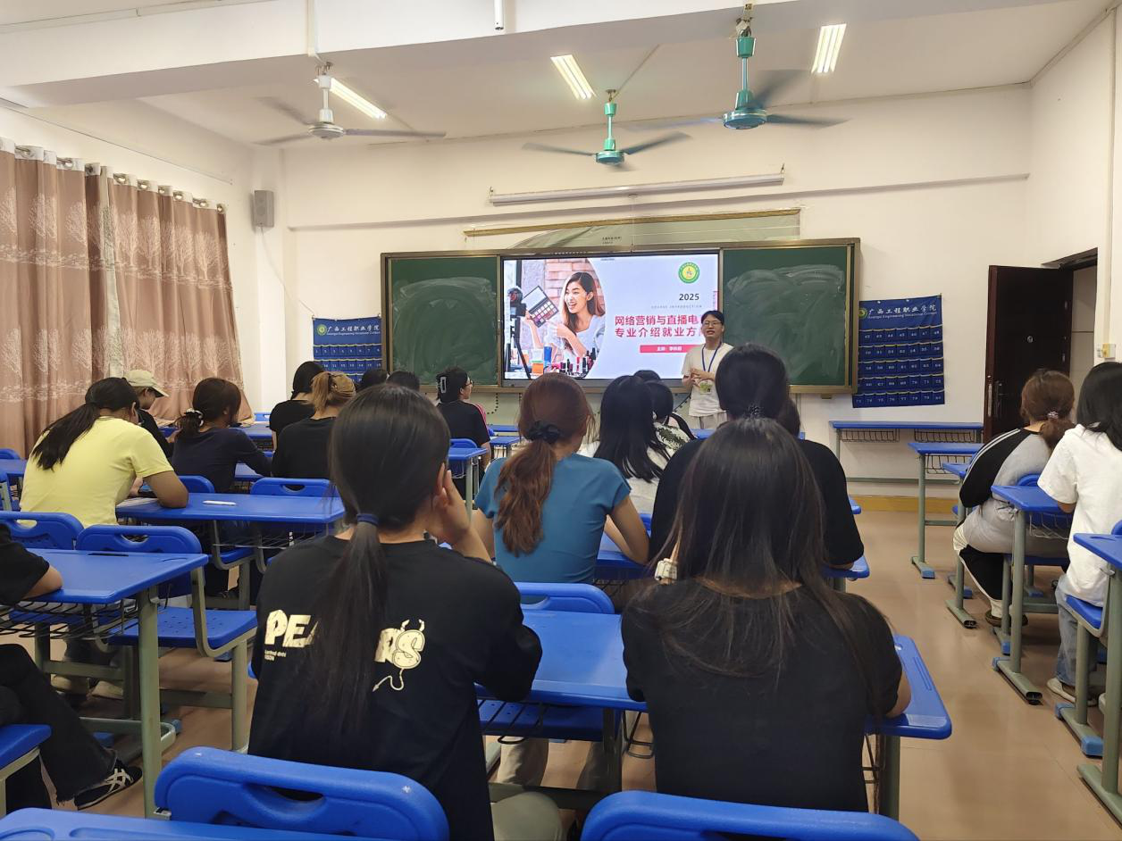 圖為學院教師李林蔚對2025級網絡營銷與直播電商專業(yè)學生進行專業(yè)介紹