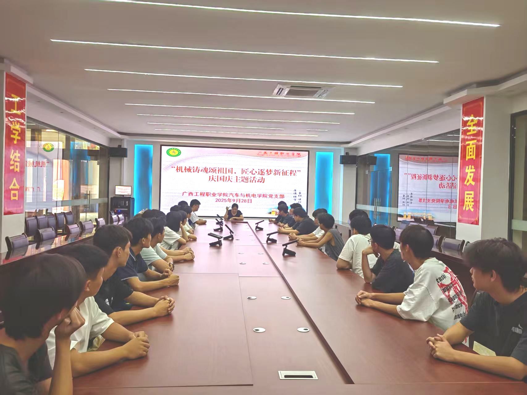 活動(dòng)中,師生黨員共同觀看了《大國(guó)重器》中關(guān)于高端裝備制造、汽車產(chǎn)業(yè)升級(jí)、智能機(jī)電技術(shù)突破的篇章。鏡頭里,從精密數(shù)控機(jī)床的毫米級(jí)精度控制,到新能源汽車核心部件的自主研發(fā),再到工業(yè)機(jī)器人在生產(chǎn)線的高效運(yùn)轉(zhuǎn),一個(gè)個(gè)彰顯中國(guó)智造實(shí)力的場(chǎng)景,讓在場(chǎng)師生深刻感受到國(guó)家工業(yè)體系從“跟跑”到“并跑”再到“領(lǐng)跑”的跨越式發(fā)展,同時(shí)也給學(xué)院汽車檢測(cè)與維修技術(shù)、工業(yè)機(jī)器人技術(shù)、電氣自動(dòng)化技術(shù)等專業(yè)領(lǐng)域開(kāi)闊新思路。