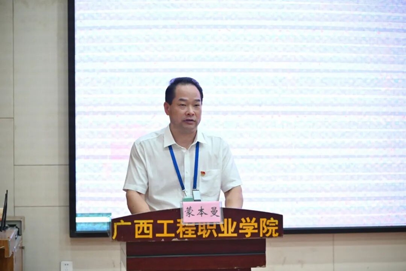 圖為宣講報告會由學校黨委書記、政府督導專員蒙本曼主持