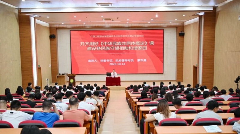 為深入貫徹落實(shí)習(xí)近平總書記關(guān)于加強(qiáng)和改進(jìn)民族工作的重要思想,進(jìn)一步鑄牢中華民族共同體意識(shí),10月14日下午,我校在圖文信息大樓一樓學(xué)術(shù)報(bào)告廳舉行鑄牢中華民族共同體意識(shí)專題培訓(xùn)會(huì)。全校教職員工參加培訓(xùn)。學(xué)校黨委書記、政府督導(dǎo)專員蒙本曼作專題講座。