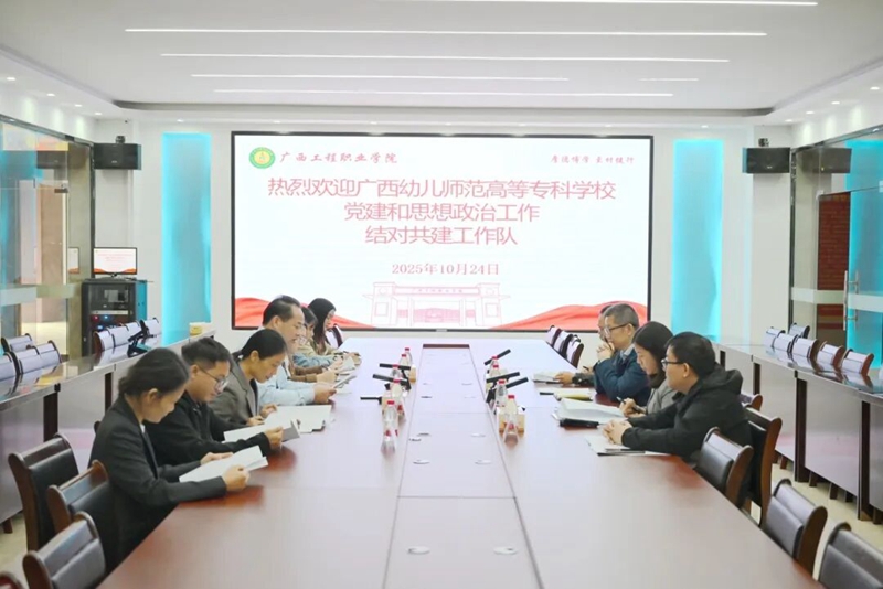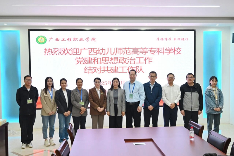 廣西幼兒師范高等??茖W(xué)校黨委組織部副部長(zhǎng)李盛勇感謝我校的熱情接待。他表示,兩校之間依托獨(dú)特的地理優(yōu)勢(shì),可以靈活多變開展結(jié)對(duì)共建工作,爭(zhēng)取把結(jié)對(duì)共建工作做出亮點(diǎn)、做出品牌。此次選派工作隊(duì)進(jìn)駐廣西工程職業(yè)學(xué)院開展結(jié)對(duì)共建工作,是兩校落實(shí)黨建和思想政治工作結(jié)對(duì)共建工作的具體舉措,期待兩校以促成項(xiàng)目落實(shí)為抓手、以資源共建共享為途徑,謀求兩校在黨建品牌創(chuàng)建、思政隊(duì)伍培育、學(xué)科專業(yè)發(fā)展等領(lǐng)域有更多合作,不斷推動(dòng)兩校黨建和思想政治工作實(shí)現(xiàn)更好發(fā)展。