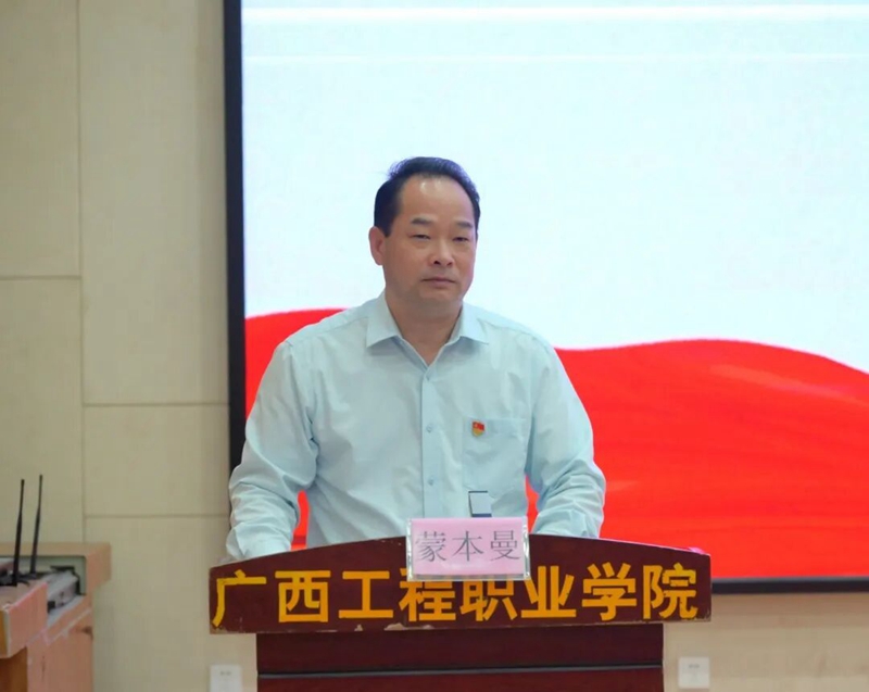 圖為學(xué)校黨委書記、政府督導(dǎo)專員蒙本曼致辭