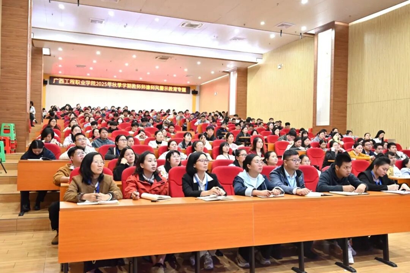 為深入加強我校師德師風建設,全面提升教師職業(yè)道德水平,著力打造一支業(yè)務精良、師德師風過硬的高素質師資隊伍,11月4日下午,廣西工程職業(yè)學院2025年師德師風專題培訓在圖文信息大樓一樓學術報告廳舉行。學校紀委書記、副校長彭高彬作題為《教師師德師風警示教育》的專題講座。