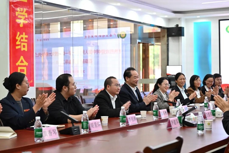 2025年11月9日,中國(guó)首批一級(jí)教授(文科院士)、中國(guó)科學(xué)技術(shù)哲學(xué)領(lǐng)軍學(xué)者、中國(guó)人民大學(xué)一級(jí)教授劉大椿先生,帶領(lǐng)中國(guó)人民大學(xué)、中國(guó)農(nóng)業(yè)大學(xué)、廣西大學(xué)等專家教授一行4人蒞臨我校指導(dǎo)工作。學(xué)校黨委書記、政府督導(dǎo)專員蒙本曼,黨委副書記黃秋霞,紀(jì)委書記、副校長(zhǎng)彭高彬,副校長(zhǎng)蔣茂麗、李明澤等校領(lǐng)導(dǎo)及各部門負(fù)責(zé)人熱情接待。