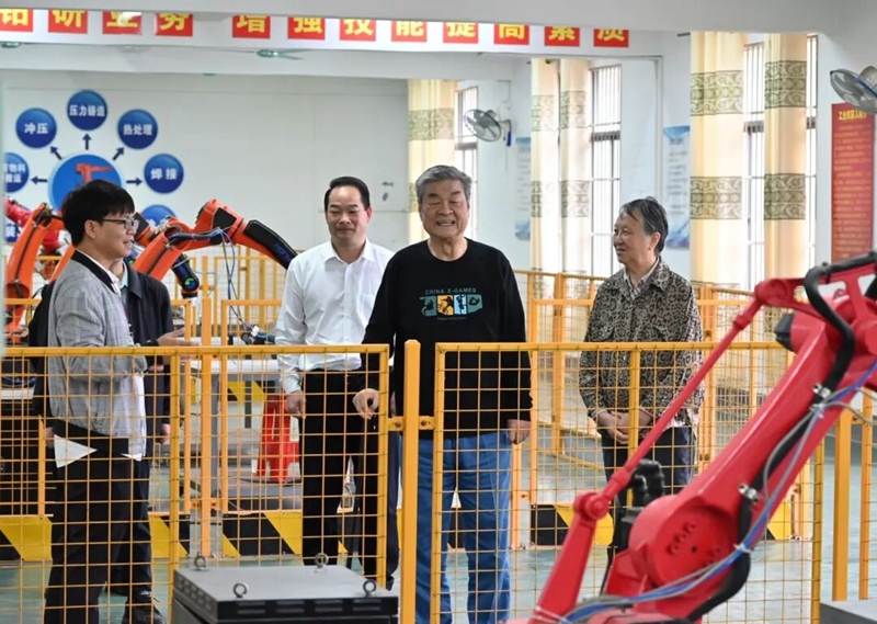 在學(xué)校領(lǐng)導(dǎo)陪同下,劉大椿先生一行走訪參觀了校園環(huán)境、汽車與機(jī)電學(xué)院工業(yè)機(jī)器人實(shí)驗(yàn)實(shí)訓(xùn)室、土木工程學(xué)院建筑材料力學(xué)實(shí)訓(xùn)室、 鐵道與航空學(xué)院航空模擬實(shí)訓(xùn)室等專業(yè)實(shí)訓(xùn)室場(chǎng)所和校史展。劉大椿先生邊走邊詢問,詳細(xì)了解校園規(guī)劃建設(shè)、實(shí)訓(xùn)基地功能布局、教學(xué)場(chǎng)景應(yīng)用及校企協(xié)同育人成效,對(duì)我校占地近1800畝、全日制在校生2萬(wàn)人的辦學(xué)規(guī)模和技術(shù)技能教育的豐碩成果給予高度評(píng)價(jià)。他指出,學(xué)校構(gòu)建的實(shí)訓(xùn)教育教學(xué)體系精準(zhǔn)對(duì)接市場(chǎng)產(chǎn)業(yè)需求,堅(jiān)定走科技創(chuàng)新、產(chǎn)教融合、職普融通之路,完全契合現(xiàn)代化職業(yè)教育發(fā)展大勢(shì)和建設(shè)制造業(yè)強(qiáng)國(guó)的國(guó)家發(fā)展戰(zhàn)略。