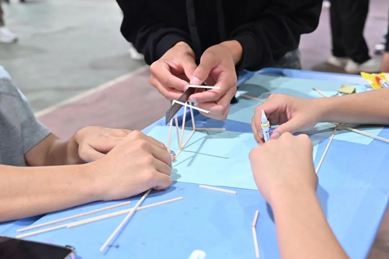 學生制作現(xiàn)場:巧手筑模型,創(chuàng)意顯匠心